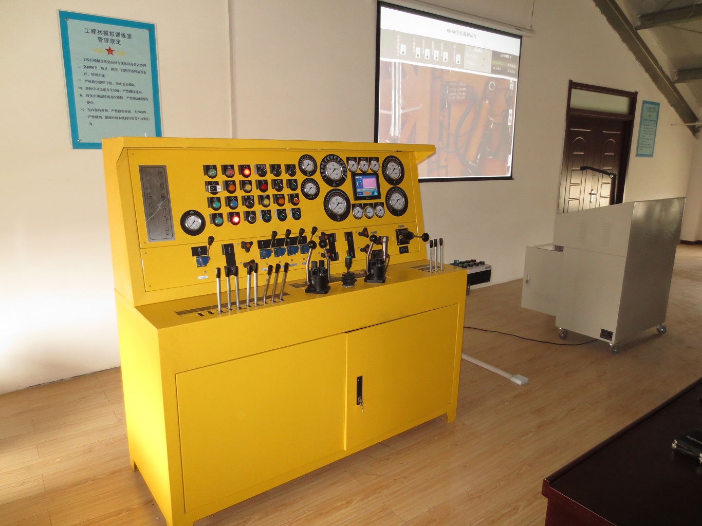 該平臺(tái)是進(jìn)行仿真訓(xùn)練和教學(xué)的專用設(shè)備,由操作臺(tái)、信號采集系統(tǒng)、仿真計(jì)算系統(tǒng)和視頻展示系統(tǒng)組成。設(shè)備通過操作平臺(tái)和軟件模擬結(jié)合的方式,對鉆井機(jī)的工作過程進(jìn)行模擬和視頻演示。利用操作元件末端的電氣改造,采集動(dòng)作信號,傳遞給PLC之后進(jìn)行數(shù)據(jù)篩選運(yùn)算,再傳遞給上位機(jī),實(shí)現(xiàn)作業(yè)操作動(dòng)作的模擬,以文字、圖片、視頻等多媒體方式在顯示界面出現(xiàn),使操作人員迅速熟悉鉆井機(jī)的操作和使用方法,全面掌握裝備的性能,提高操作水平。