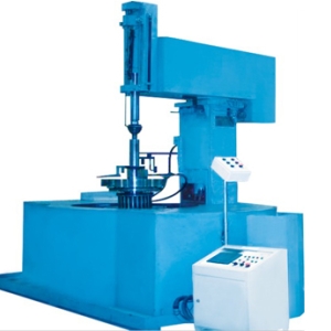 ZCJ-915型軸承淬火壓床,該設(shè)備與加熱爐配套使用,零件通過二次加熱后迅速轉(zhuǎn)移至淬火壓床實施急速冷卻,并在模具的限形作用下,有效阻止零件的漲縮,減小零件形變和畸變,從而使工件尺寸保持一致性和重復(fù)性,以達(dá)到控制軸承的熱處理畸變和提升熱處理質(zhì)量的目的。淬火工件包括軸承的單錐內(nèi)外圈和雙錐內(nèi)外圈。該壓床包括主機、液壓站、電控部分及中心噴油機構(gòu)等,主機由油箱部分、工件淬火機構(gòu)、模具提升機構(gòu)、旋轉(zhuǎn)機構(gòu)、定位插銷機構(gòu)、定位插板機構(gòu)等部分組成,電控部分采用觸摸屏控制,便于操作且顯示直觀。對于較小工件,手動將工件放至淬火盤進行淬火;較大工件淬火時,旋轉(zhuǎn)臂轉(zhuǎn)動一定角度后,用起吊裝置將工件放至淬火盤進行淬火。